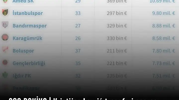 Amedspor, yeni transferi Krisyijan Lovric ile birlikte 1. Lig'deki en değerli kadrolardan birine sahip oldu. Kadro değeri 10.69 milyon €'ya yükselen Amedspor, ligin en değerli takımları sıralamasında 3. sıraya yerleşti. Listenin ilk sırasında 16.23 milyon €'luk kadrosuyla Ankaragücü bulunurken, Kocaelispor 11.40 milyon € ile ikinci sırada yer alıyor.